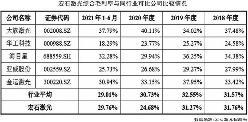 虽然头顶高科技光环亮相,宏石激光研发投入力度却和同行大相径庭。从2018年-2020年3个完整财年来看,宏石激光研发费用率均低于行业平均值超过3个百分点,与大族激光的研发费用率更存在一倍有余的差距。
