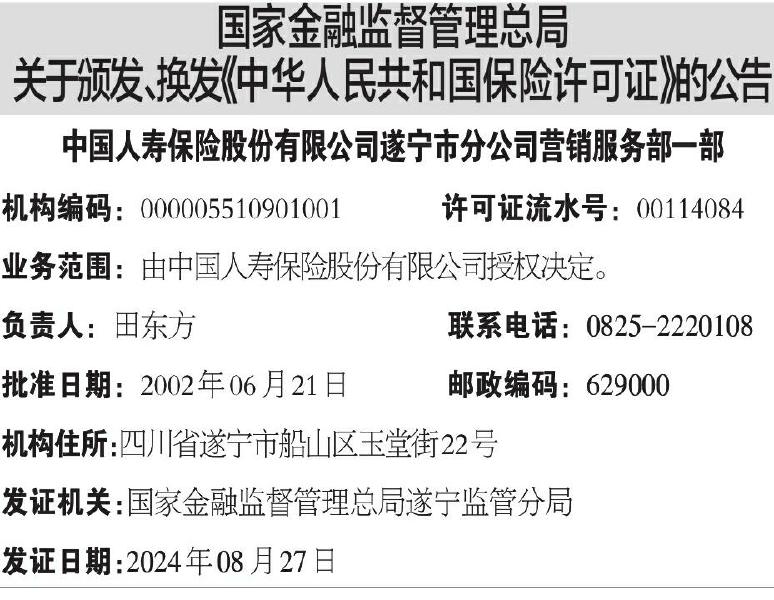 ·国家金融监督管理总局关于颁发、换发《中华人民共和国保险许可证》的公告