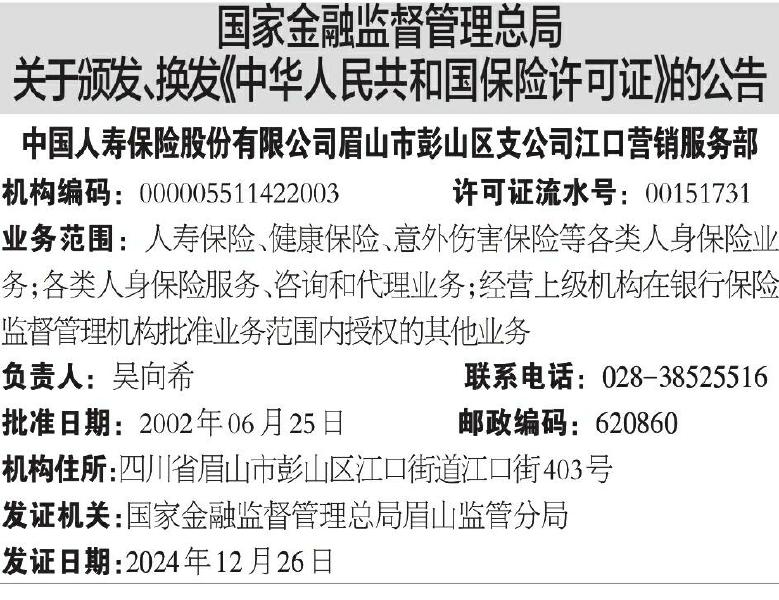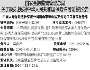 ·国家金融监督管理总局关于颁发、换发《中华人民共和国保险许可证》的公告