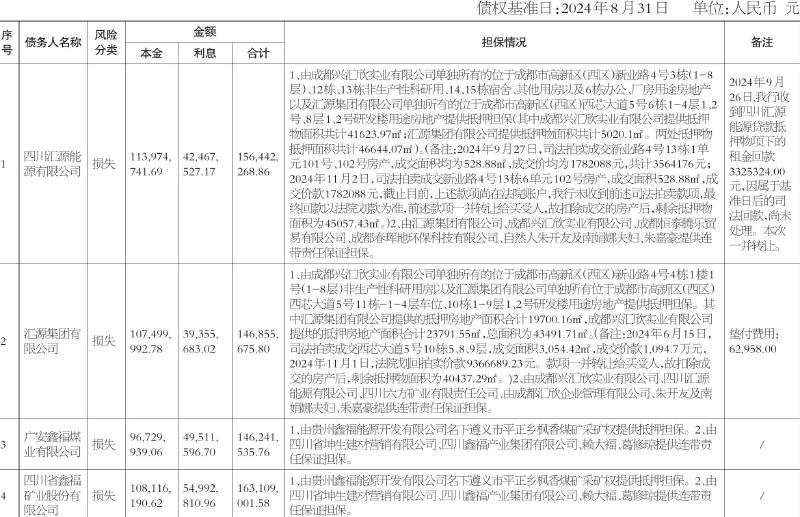 2.本公告清单仅列示截至2024年8月31日的贷款本息余额,借款人和担保人应支付给中国中信金融资产管理股份有限公司四川省分公司的利息、罚息、违约金及其它应付款按借款合同、担保合同及中国人民银行的有关规定或生效法律文书确定的方法计算,实际计算与欠息金额不一致,以实际计算为准。已经进入诉讼程序的,并已由原债权人垫付的应由借款人及担保人负担的诉讼费、执行费等以有关法律文书及《不良资产批量转让协议》附件清单确定的金额为准。