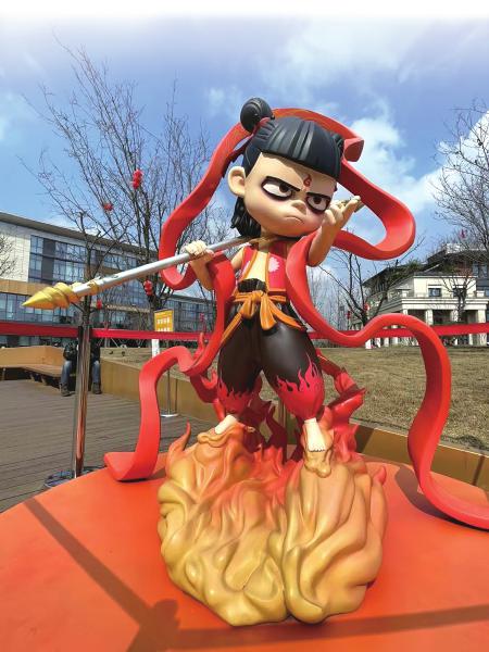 位于成都高新区天府长岛数字文创园的哪吒塑像。 受访者供图