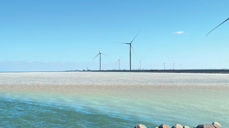本以为这次旅行会留下遗憾,没想到峰回路转,顺着孤东海堤一路北上,竟意外地遇见了那道淡淡的黄蓝交汇线。虽然不如夏季那般醒目,但在这冬日的萧瑟中显得尤为珍贵。
