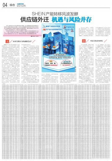 ■本报记者 刘庆华 近日快时尚企业SHEIN要求其在中国的一些主要服装供应商在越南设立新的生产线的消息在业内发酵SHEIN此举被解读为意在增加中国以外的供应链