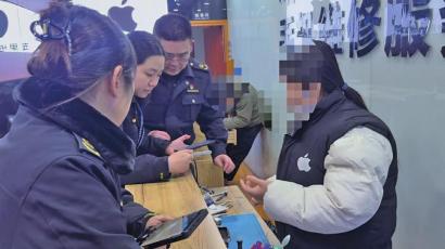 “你们店招牌叫‘苹果维修中心’,又挂起苹果Logo,华为和小米的手机能修吗?”执法人员询问。女店员说“都能修”。执法人员又问:“会不会有消费者看到你们店名是‘苹果’,以为只能修苹果手机呢?”女店员表示:“还是有顾客来修其他品牌的手机。”