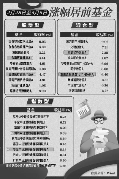 混合基金方面,2月28日至3月6日,4649只基金中平均收益为0.21%,共有2701只基金收益为正,占比也不足六成。同时,涨超5%的基金共有24只。