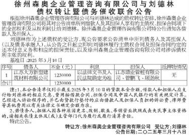 ·徐州森奥企业管理咨询有限公司与刘德林债权转让暨债务催收联合公告