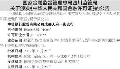 ·国家金融监督管理总局四川监管局关于颁发《中华人民共和国金融许可证》的公告