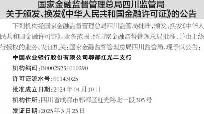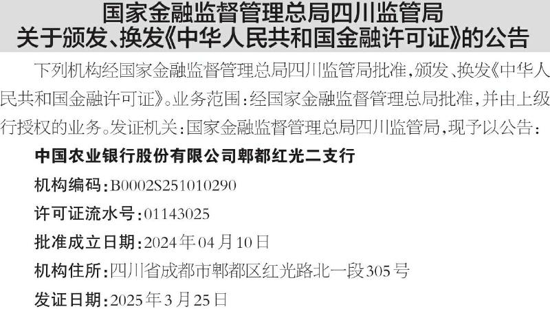 ·国家金融监督管理总局四川监管局关于颁发、换发《中华人民共和国金融许可证》的公告