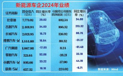 上市公司进入2024年年报密集披露期,多家新能源车企的2024年“成绩单”陆续出炉。