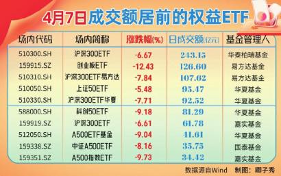 除华泰柏瑞沪深300ETF以外,易方达创业板ETF、易方达沪深300ETF在4月7日的成交额也均在百亿元以上,分别为127亿元和108亿元,分别较此前一个月的日均成交额增长了4倍以上和7倍以上。