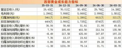 就西部黄金来看,2024年,公司实现营业收入70.01亿元,同比增长56.68%;实现归母净利润2.89亿元,同比增长205.7%。公司表示,业绩改善主要源于自有矿山黄金销量增加、销售价格同比上升,以及采矿权出让收益的摊销方式调整。