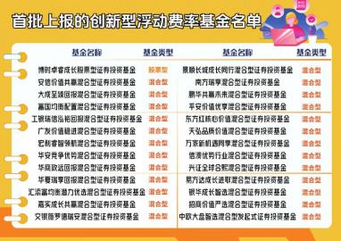 随后,基金公司积极上报浮动费率产品。从此次上报的首批产品来看,26只基金中有25只为混合型基金,1只为股票型基金。