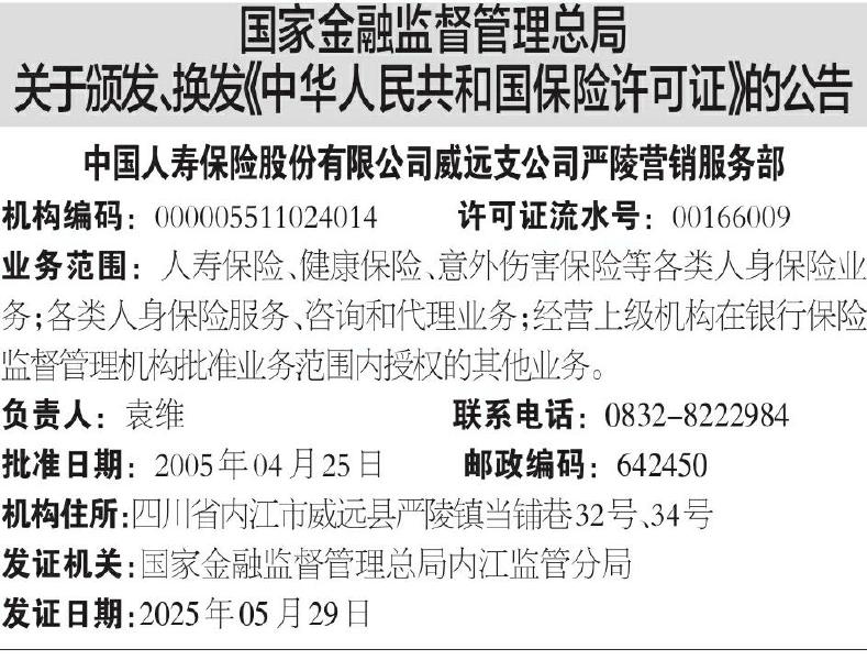 ·国家金融监督管理总局关于颁发、换发《中华人民共和国保险许可证》的公告