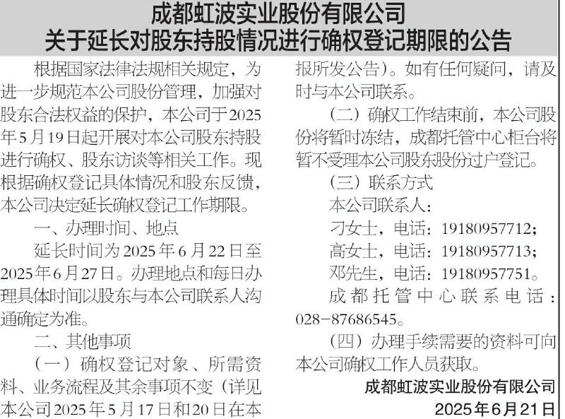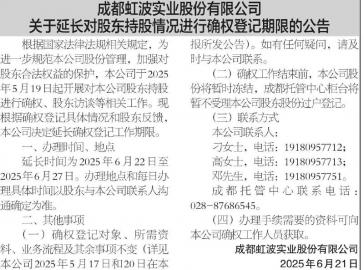 ·成都虹波实业股份有限公司关于延长对股东持股情况进行确权登记期限的公告