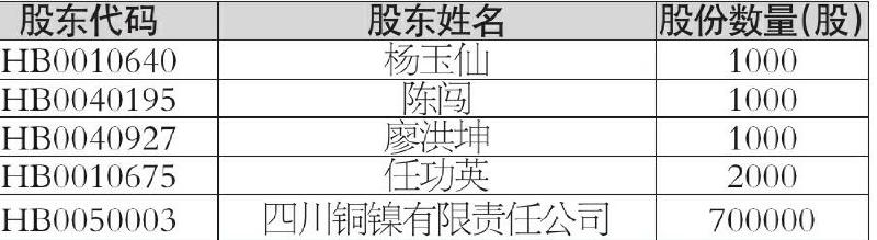 受持卡人委托,本公司如下股东代码卡遗失。该代码卡已失效,任何使用该等代码卡进行股权转让、质押等行为均为非法行为。