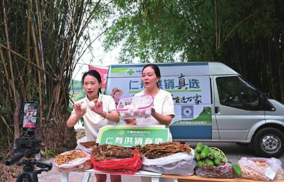 “大山村供销合作社是我们县直播做得很好的一个村级供销合作社。”仁寿县供销合作社联合社相关负责人介绍,近年来,该县采取“村两委+供销合作社”的“村社共建”方式,建立村级供销社24个,推广村“两委”与供销社交叉任职,通过多种方式积极协调各方资源,助力农产品打开销路,助农快销增收,助力乡村振兴。通过打造直播平台、建设农产品展示展销中心,与村供销社合作,加大与京东、淘宝等电商平台的合作力度,促进农特产品销售。