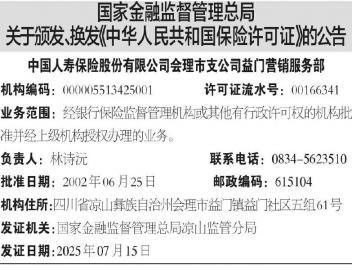 ·国家金融监督管理总局关于颁发、换发《中华人民共和国保险许可证》的公告