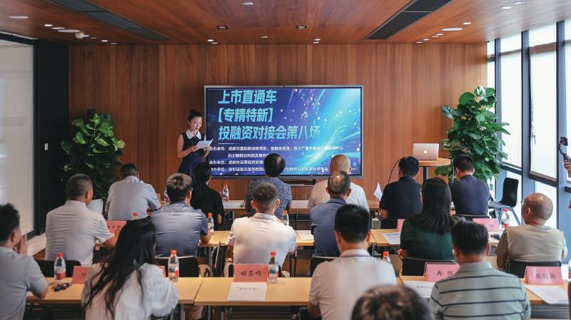 本报讯 7月23日下午,由成都市国际税收研究会、金融投资报社、四川广播电视台广播融媒中心、四川银链企科技发展有限公司主办,成都市民营经济发展促进中心承办,深圳证券交易所西部基地、深交所创新创业投融资服务平台(科融通V-Next)协办的“上市直通车‘专精特新’投融资对接会第八场活动”在成都召开。计划融资企业代表,以及投资机构代表等50余人参加活动。