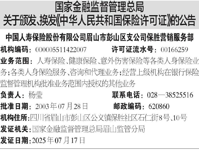 ·国家金融监督管理总局关于颁发、换发《中华人民共和国保险许可证》的公告
