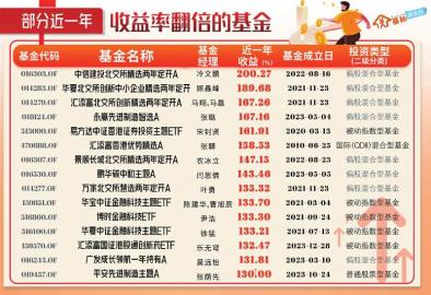 权益投资再度王者归来!近一年来,已有54只基金收益率突破100%!过去一年,上证指数自2900点附近低位反弹,经历了“9.24”爆涨行情触及3674点之后持续震荡。近期以来,指数再度反弹走高。期间,虽然上证指数尚未突破“9.24”行情创下的高点,但结构性行情精彩不断。加之港股市场表现强势,投向A股和港股股票资产的基金净值不断走高,业绩翻倍的基金已达到54只,单只基金收益率最高已达200%。■本报记者 刘庆华