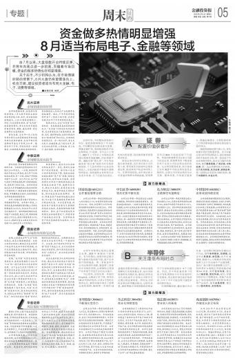 资金做多热情明显增强 8月适当布局电子、金融等领域