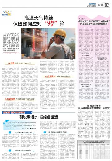 ■本报记者 吉雪娇 7 月下旬以来多地高温天气超长待机连续发布高温红色预警信号面对持续高温引发的中暑、车辆自燃等人身与财产损失保险产品能否予以赔付?消费者如何按需投保