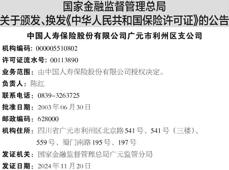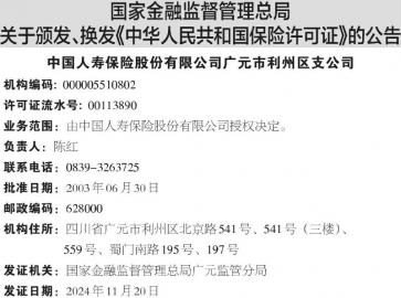 ·国家金融监督管理总局关于颁发、换发《中华人民共和国保险许可证》的公告