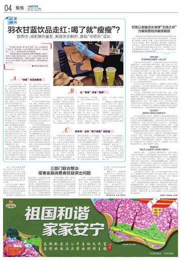 “吃完重口的东西要‘洗洗’肠胃”近日在成都和悦广场吃完一顿火锅后小成拉着朋友走向附近一家奶茶店一人点了一杯绿色的羽衣甘蓝果蔬茶 “我和朋友最近在准备减脂就要吃得健康点