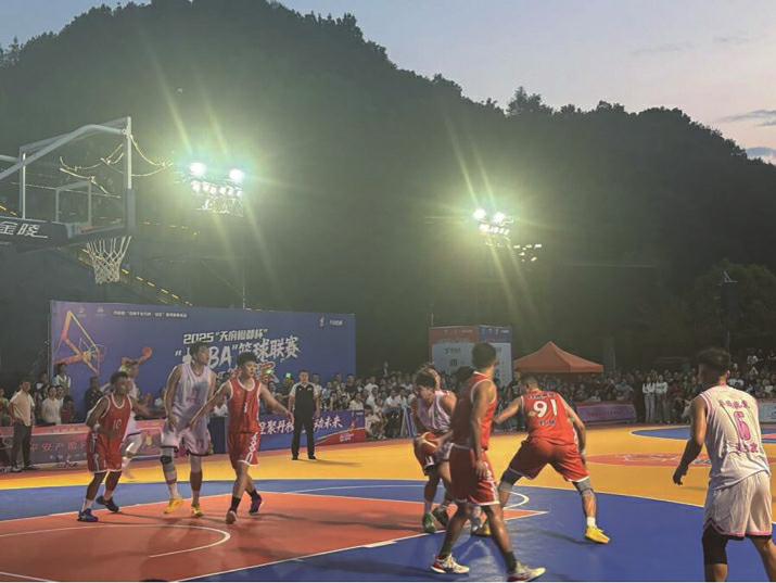 赛事开场,精彩纷呈的暖场节目瞬间点燃现场气氛。随后,各参赛队伍身着统一队服有序入场。随着裁判一声哨响,首场比赛正式开始。赛场上,球员们迅速进入状态,带球过人、精准传球、起身投篮……攻防节奏切换自如;赛场下,里三层外三层的人群围绕在篮球场边,热情高涨,不时拍手叫好,所有人都沉浸在这场热血沸腾的篮球赛事中。