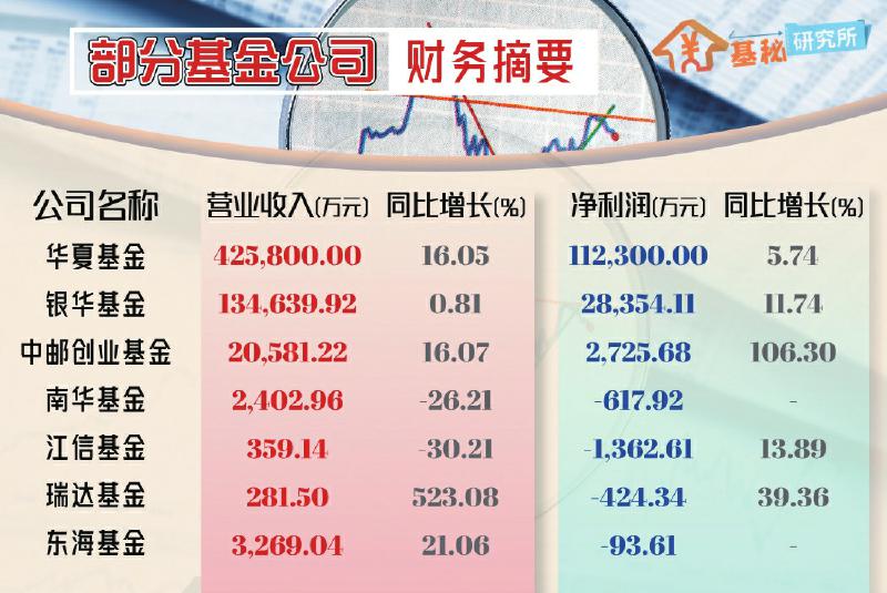 随着上市公司半年报的陆续披露,部分基金公司上半年的经营业绩也纷纷揭晓。在上半年权益市场回暖的带动下,多家基金公司管理规模实现增长,营业收入和净利润增速均呈现向好态势。如大型基金公司中的华夏基金和银华基金,营业收入和净利润的增速都由去年的下滑扭转为增长。