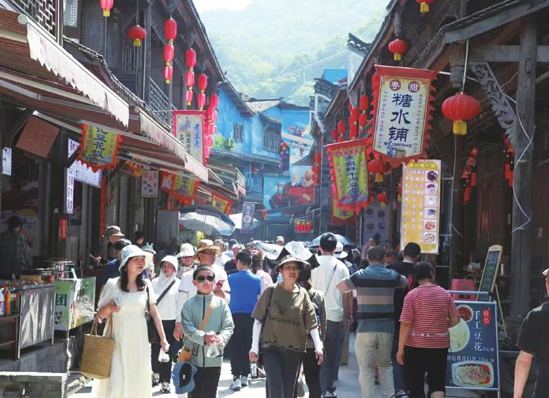 在利益共享方面,构建“就业+创业+分红”多元增收路径。户外山地项目、集体公司岗位优先雇佣本地村民,提供稳定工资性收入;对彭派一口酥等商家提供政策、信贷、场地等支持,古镇70%的居民参与文旅经营,人均年收入增长15%;集体公司年度利润的10%用于社员分红。2024年,古镇旅游综合收入突破10亿元,同比增长28%,实现“经营有收益、创业有扶持、务工有工资、分红有保障”的全域共富目标。