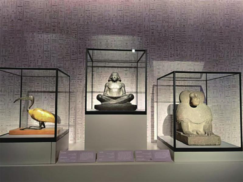 不仅如此,古埃及文明大展还打破了以往相同题材展览依赖从欧美博物馆借展、以西方视角叙事的传统模式。上海博物馆联合中国埃及学者团队进行自主策划,通过通史与专题结合的方式展开独立叙事,并巧妙地融入中国文物进行“文明对话”,展开中外文明互鉴的生动实践。
