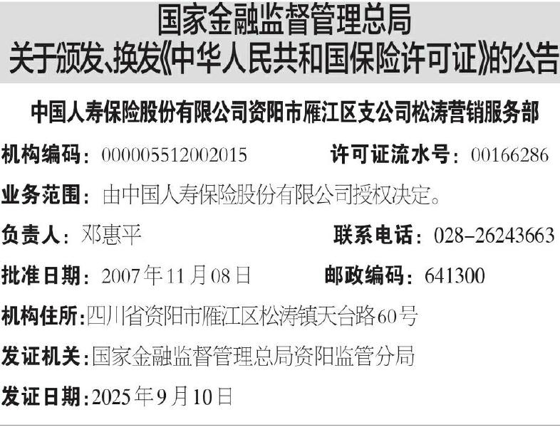 ·国家金融监督管理总局关于颁发、换发《中华人民共和国保险许可证》的公告