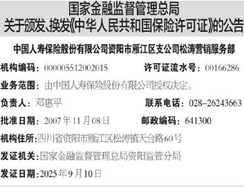 ·国家金融监督管理总局关于颁发、换发《中华人民共和国保险许可证》的公告