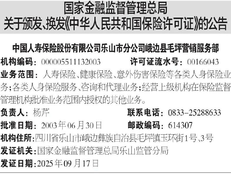 ·国家金融监督管理总局关于颁发、换发《中华人民共和国保险许可证》的公告