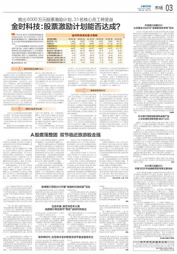 今年以来股价已出现超两倍涨幅的金时科技(002951.SZ)于近日发布了2025年限制性股票激励计划金融投资报记者注意到此次金时科技的股票激励市值达到6000万元