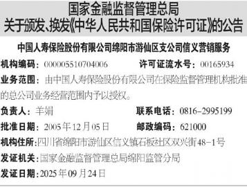 ·国家金融监督管理总局关于颁发、换发《中华人民共和国保险许可证》的公告