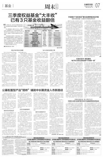 三季度权益基金“大丰收”已有 3 只基金收益翻倍