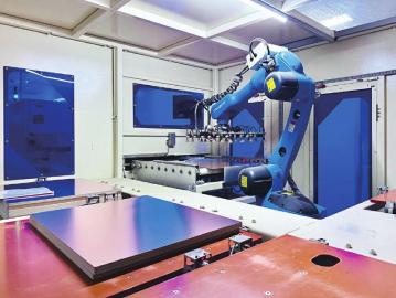 机械手正在抓取印制电路板,通过钻孔对位整齐叠放。金融投资报记者 黄凌屹 摄