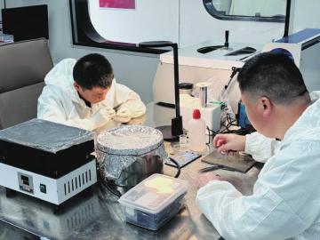 科研人员正在研究电子元件。 摄影 黄凌屹
