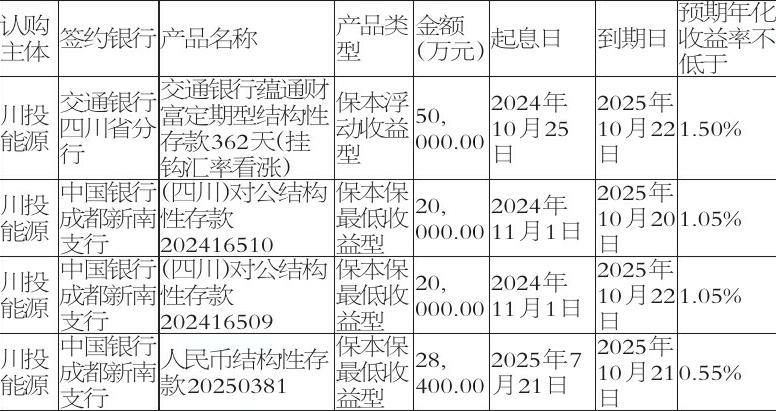 四川川投能源股份有限公司(以下简称“公司”)于2025年10月20日召开第十一届董事会第四十一次会议,审议通过《关于授权继续使用暂时闲置募集资金进行现金管理的提案报告》。拟在确保不影响募集资金投资项目正常进行的前提下,对14亿元以内的暂时闲置募集资金进行现金管理。现金管理品种为商业银行保本型理财产品,期限为2025年10月23日至2026年10月22日止,12个月内,资金可滚动使用。