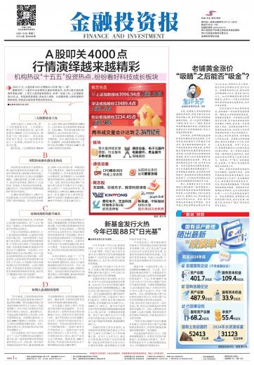 ■金融投资报记者林珂 3999.07点大盘距离4000点整数关口仅差“临门一脚”随着党的二十届四中全会释放出诸多积极信号本周A股市场的激情再度被点燃上周五大盘突破前期高点