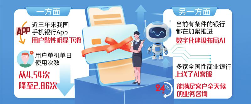 根据艾瑞咨询报告数据,2023年至2025年,我国手机银行APP用户黏性明显下滑,用户单机单日有效使用时间从4.93分钟跌至2.70分钟,单机单日使用次数从4.54次降至2.86次。