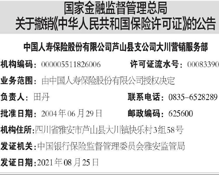 ·国家金融监督管理总局关于撤销《中华人民共和国保险许可证》的公告