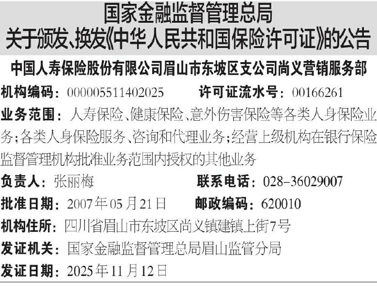 ·国家金融监督管理总局关于颁发、换发《中华人民共和国保险许可证》的公告