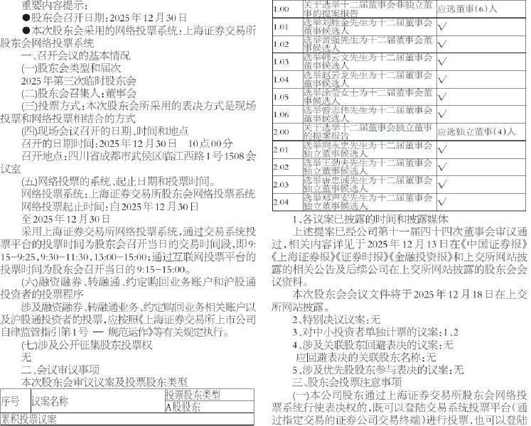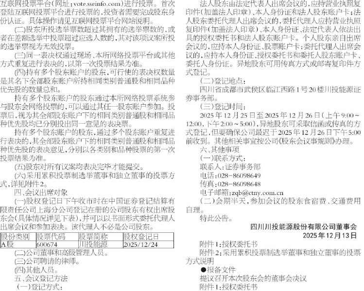 ·四川川投能源股份有限公司关于召开 2025年第三次临时股东会的通知