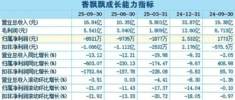 子公司的压力仅仅是集团整体困境的一个缩影。2025年三季报显示,香飘飘正遭遇严峻的业绩滑坡,前三季度,香飘飘的营业收入为16.84亿元,同比下降13.12%;利润总额为-1.19亿元,同比下降2018.23%;归母净利润为-8920.72万元,同比下降603.07%。