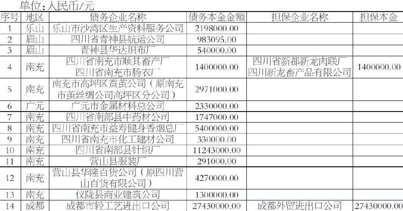 四川富润企业重组投资有限责任公司(以下简称:富润投资公司)对下表债务人、担保人及其他相关义务人的全部权利,主债权及担保合同、抵债协议、还款协议和其他相关协议项下的全部权益已依法转让给四川甲城物业管理有限公司(以下简称:甲城管理公司),甲城管理公司已依法获得富润投资公司对下表所列债务人、担保人及其他相关义务人的全部权利、相关合同与协议的全部权益。现甲城管理公司要求对外公告下表所列债务人、担保人及其他相关义务人,从公告之日起立即向甲城管理公司履行还款责任、担保责任及相关义务。特此公告。