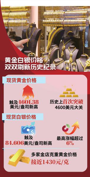 金价突破4600美元美元,,白银单日飙涨逾6%