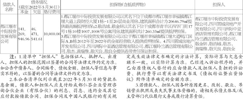 根据四川发展资产管理有限公司与成都仁荟企业管理咨询合伙企业(有限合伙)签署的《债权转让暨出资协议》,四川发展资产管理有限公司已将其对下列借款人及其担保人项下享有的全部权利(包括但不限于主债权、担保债权、违约金债权、利息债权、损失赔偿权等)依法转让给成都仁荟企业管理咨询合伙企业(有限合伙)。四川发展资产管理有限公司与成都仁荟企业管理咨询合伙企业(有限合伙)联合公告通知各借款人及担保人以及其他相关各方。